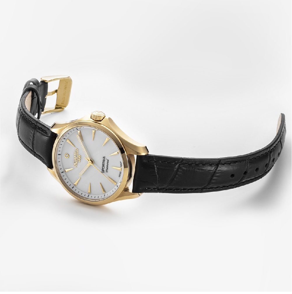 Επιπλέον Χαρακτηριστικά/Λειτουργίες: GENUINE DIAMONDS, White mop dial, leather strap