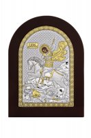 Ασημένια εικόνα του Αγίου Δημητρίου σε καφέ ξύλο