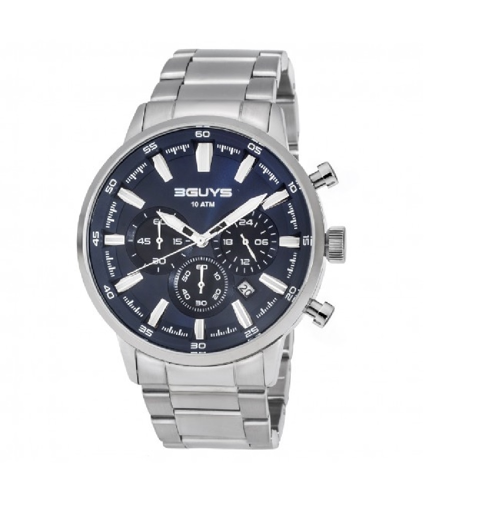 3Guys Men's Chronograph Watch Silver Stainless Steel Bracelet 3G27002