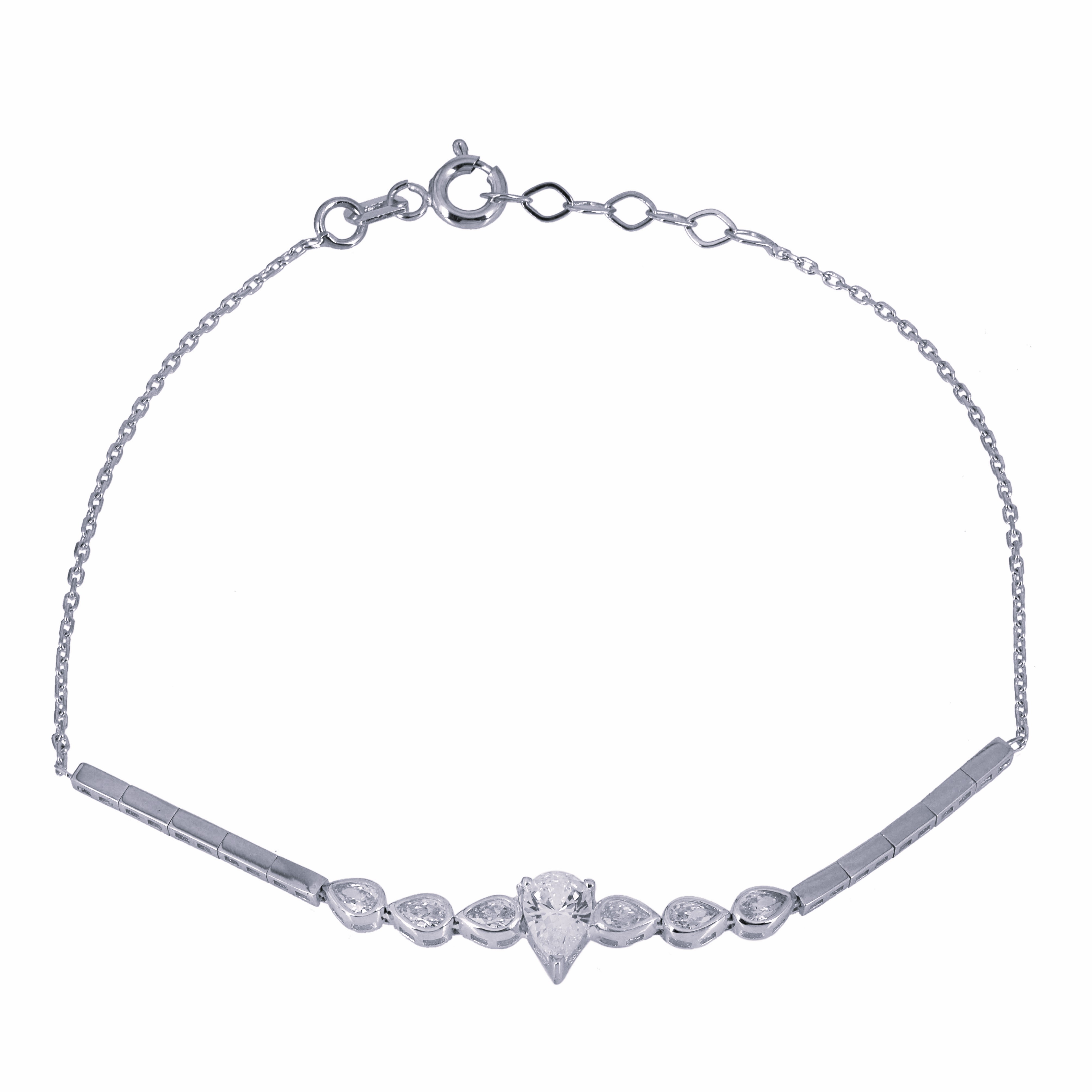Xρυσό βραχιόλι 14 Καρατίων διακοσμημένο από λουστρέ ορθογώνια σχέδια και μία κεντρική πέτρα ζιργκόν Swarovski σε σχήμα δάκρυ που περιτρυγυρίζεται από 3 μικρότερες πέτρες ζιργκόν Swarovski σε κάθε μεριά.