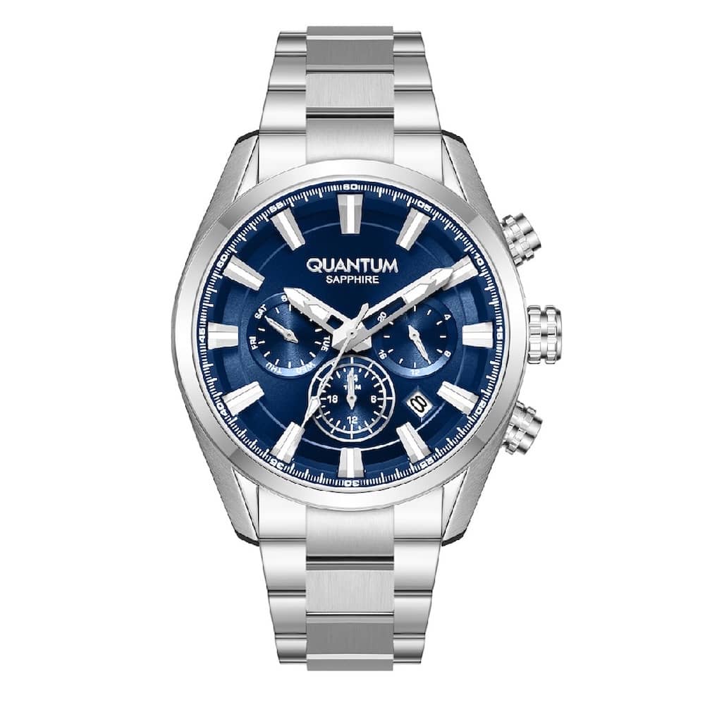 Κάσα: Ασημί ανοξείδωτο ατσάλι με μπλε στεφάνη