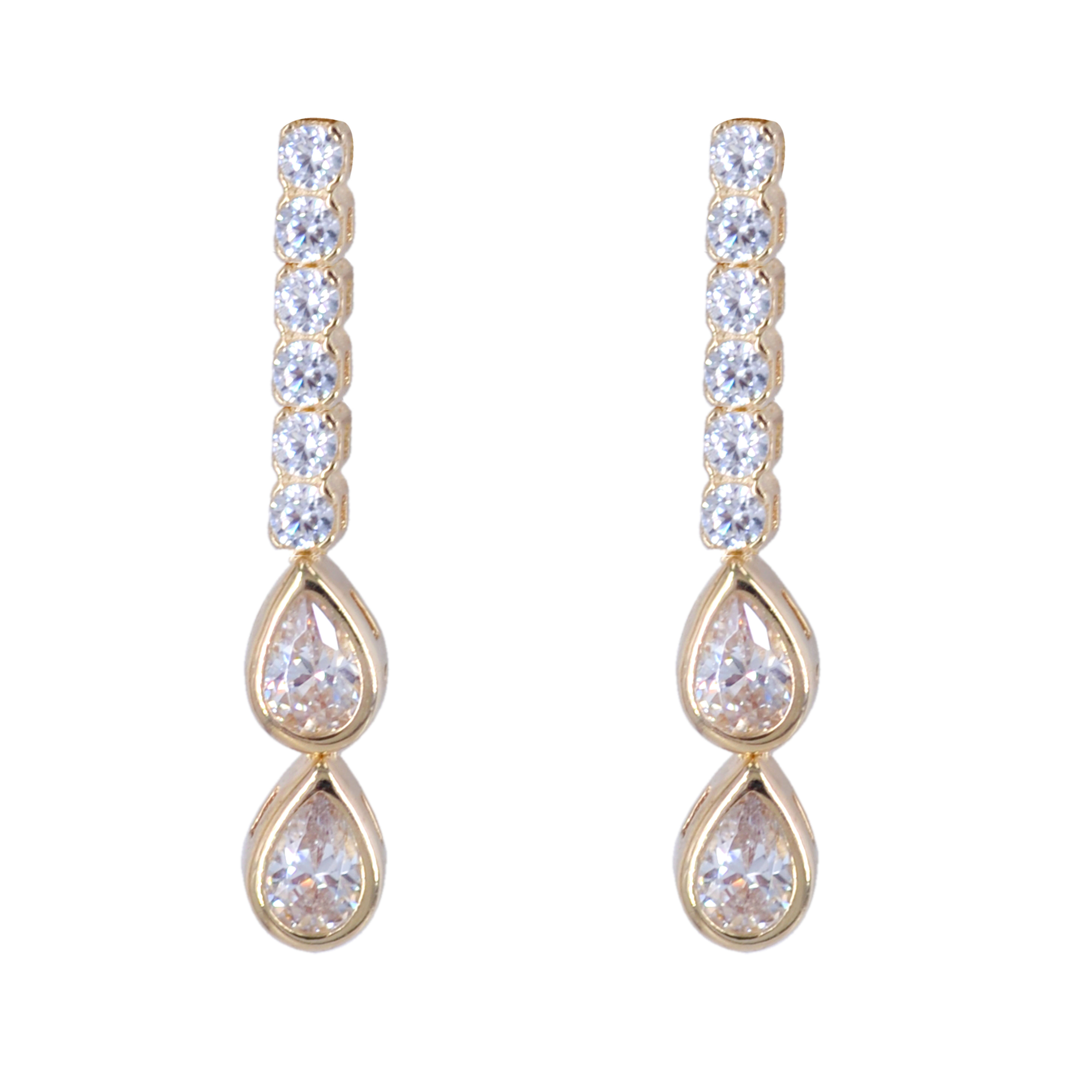 Σετ χρυσό 14 Καρατίων, με ιδιαίτερο μοντέρνο σχέδιο από μονή σειρά με ζιργκόν Swarovski η οποία συνεχίζει με σειρά πετρών σε σχέδιο δάκρυ ζιργκόν Swarovski.