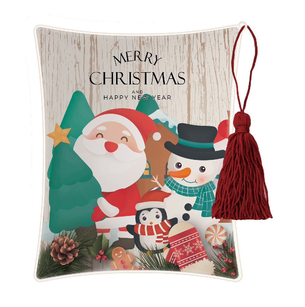 Επιτραπέζια διακοσμητική εικόνα με θέμα Marry Christmas και Happy New Year Χριστουγεννιάτικη Παρέα με λευκή ξύλινη πλάτη.