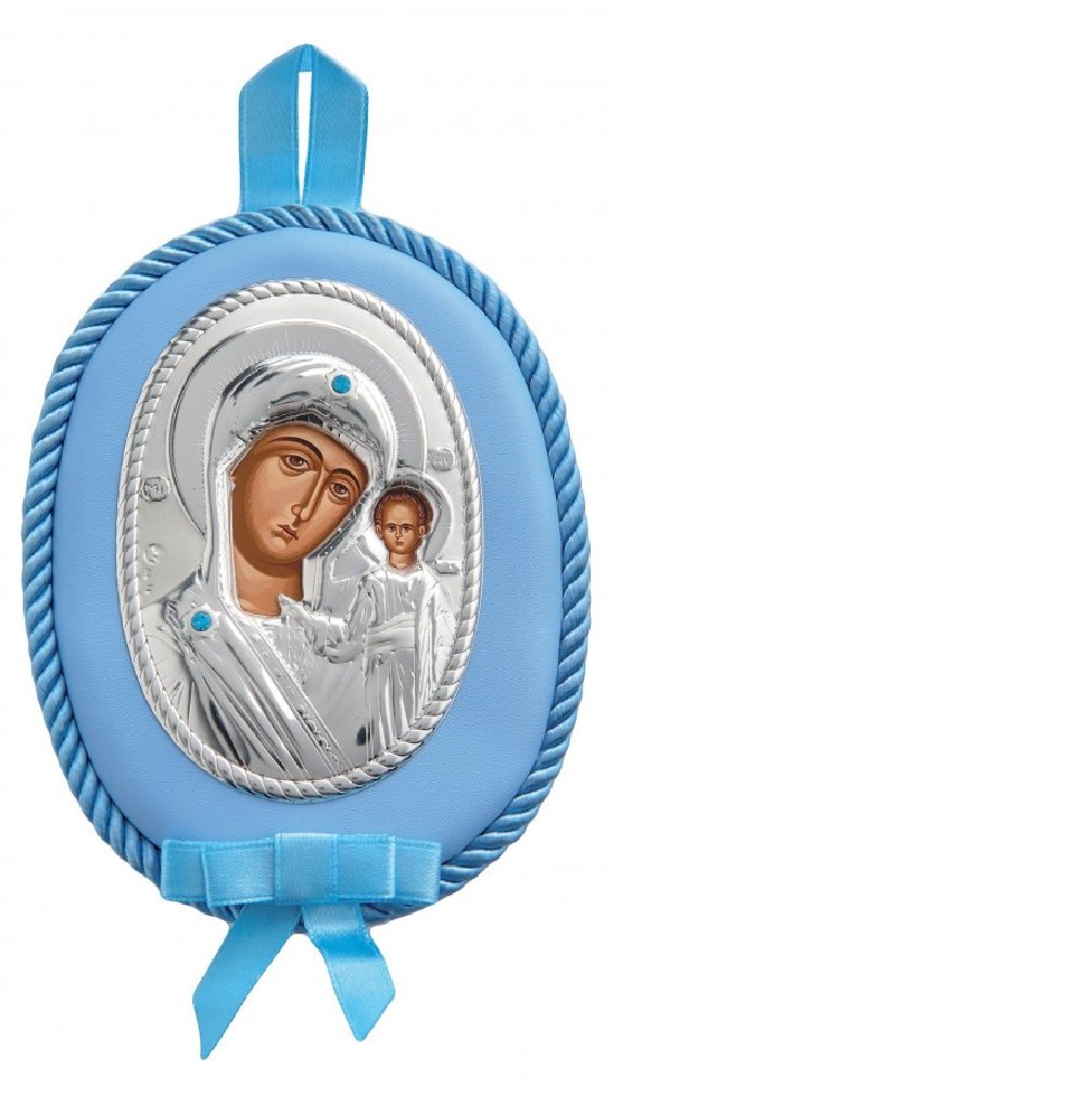 Ασημένια 925 εικόνα κούνιας με μουσική με την Παναγία Καζάνσκα.