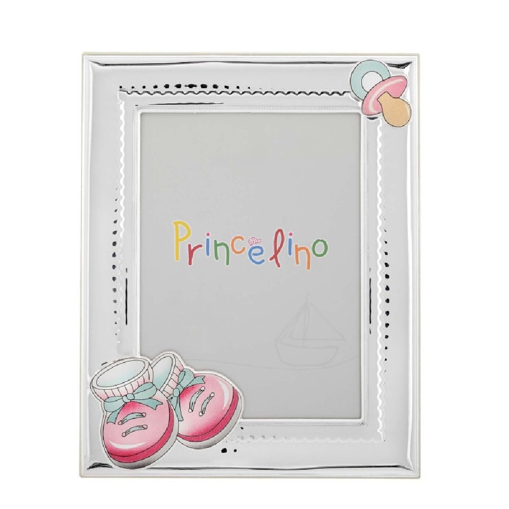 Παιδική κορνίζα φωτογραφίας για κορίτσι, από ασήμι 925, διακοσμημένη με παπουτσάκια.