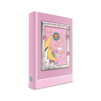 Ασημένια παιδική κορνίζα Slevori, με διακοσμητικό φεγγαράκι, σε ροζ χρώμα.