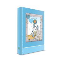 Ασημένια παιδική κορνίζα Slevori, με διακοσμητικό αρκουδάκι, σε σιέλ χρώμα.