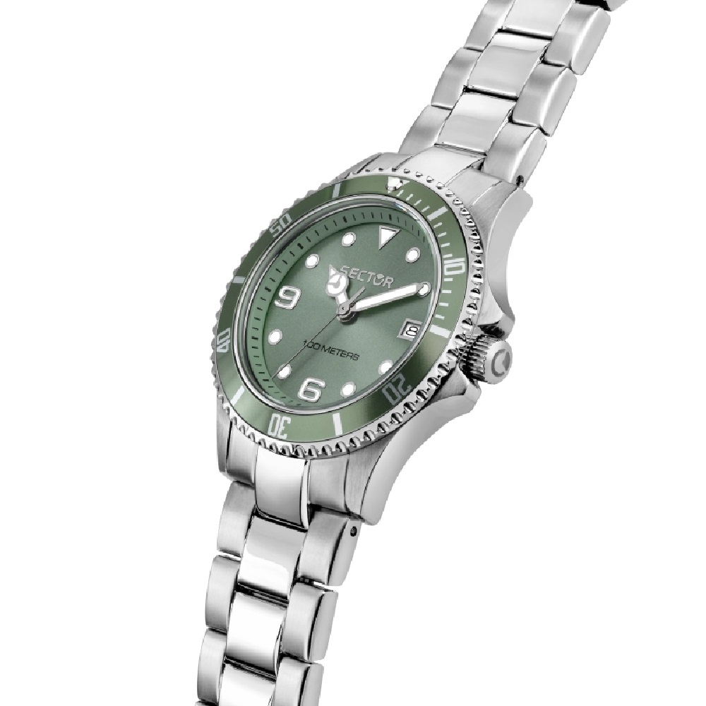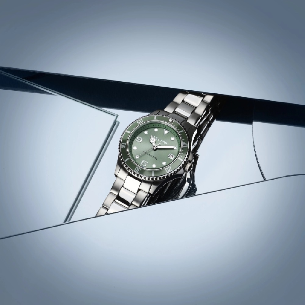 Κάσα: Ασημί με πράσινη σκούρα μεταλλιζέ στεφάνη από ανοξείδωτο ατσάλι