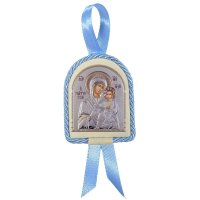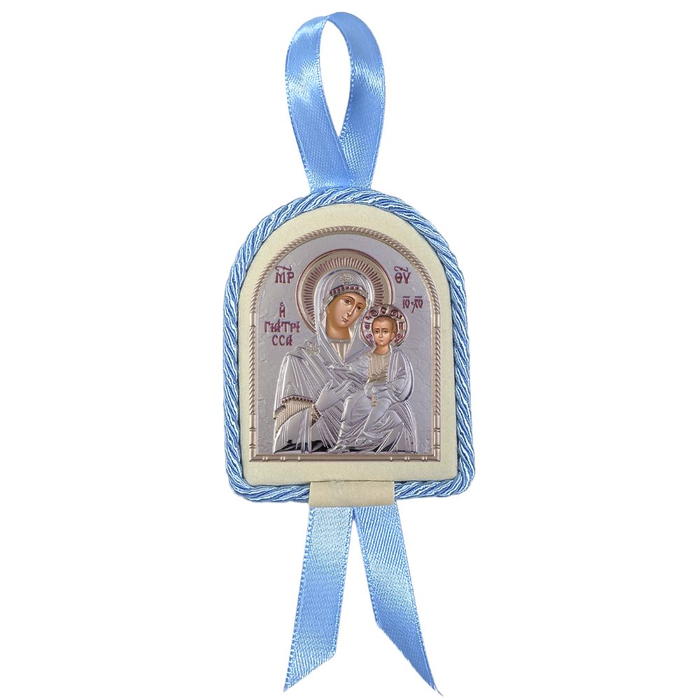Ασημένιο παιδικό σετ 925 Μπέμπης και εικόνα κούνιας με την Παναγία την Γιάτρισσα.