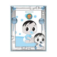 Ασημένιο Παιδικό Σετ με κορνίζα Μπέμπης, 9060-903AWM-HG-B