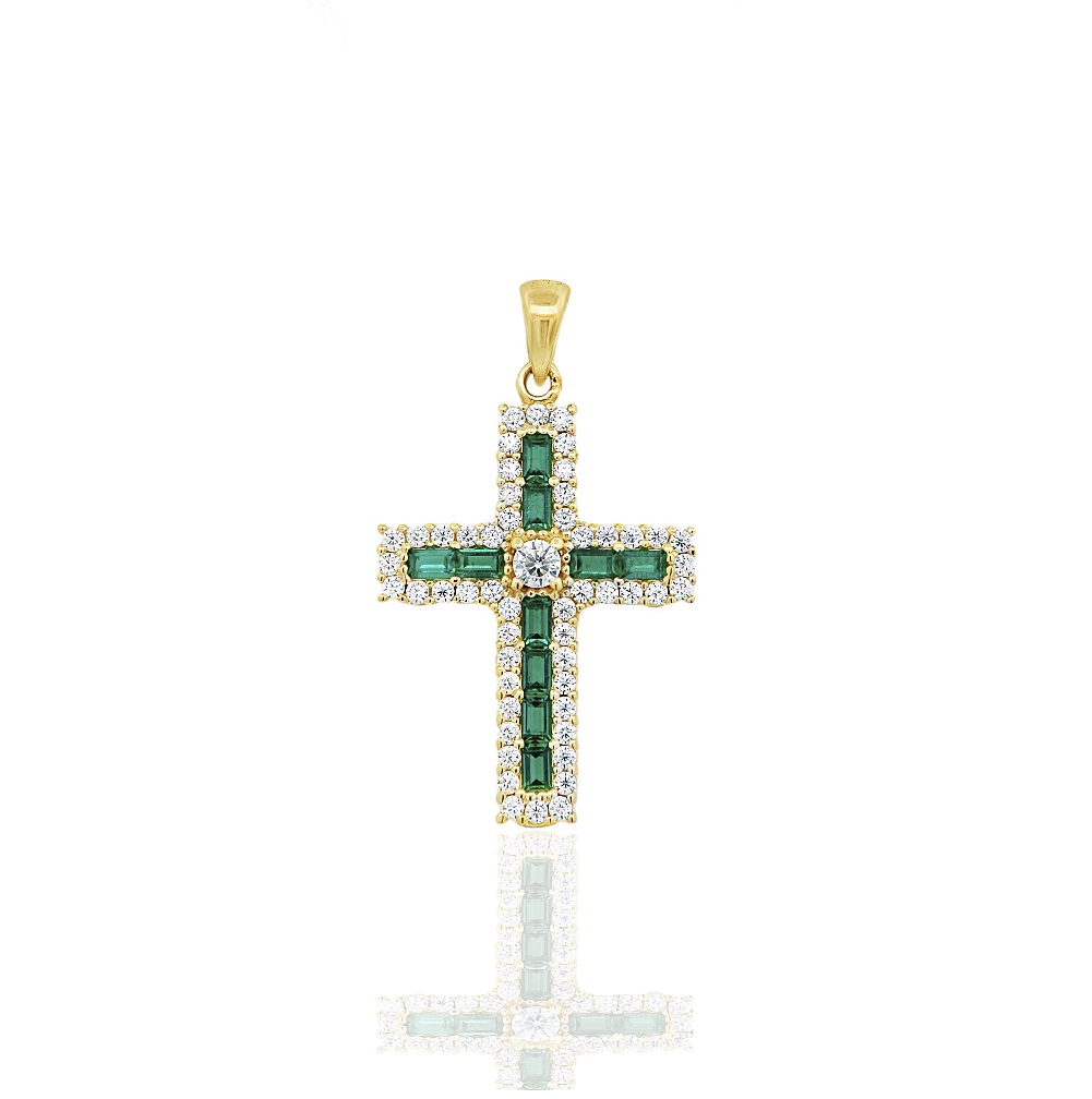 Χρυσός Σταυρός 14 Καράτια με Σμαράγδια και Ζαφείρια 45175-24141Y1MET