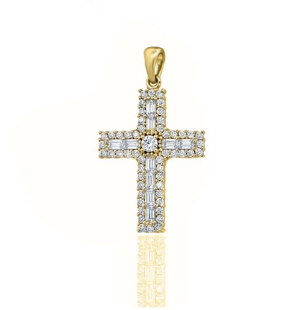 Χρυσός Σταυρός 14 Καρατίων με λευκά ζαφείρια.