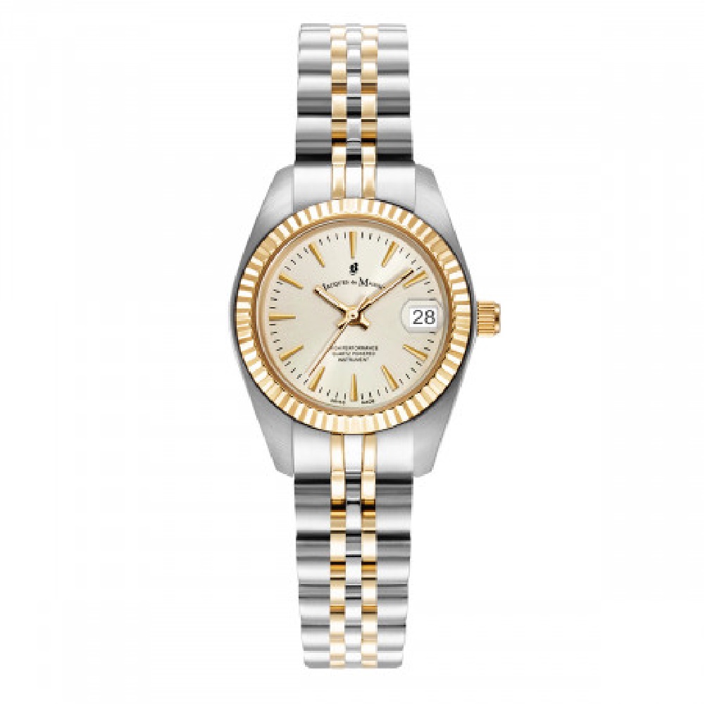 Κάσα: Λευκό ασημί ανοξείδωτο ατσάλι με κίτρινη χρυσαφί στεφάνη