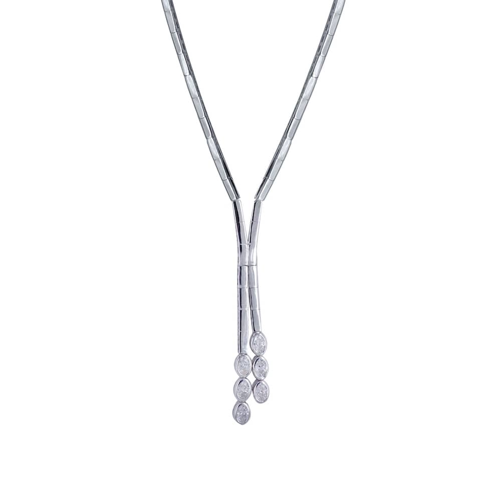 Σετ λευκόχρυσο 14 Καρατίων, με ιδιαίτερο μοντέρνο σχέδιο με ορθογώνια στοιχεία και με πέτρες ζιργκόν Swarovski σε οβάλ σχήμα.