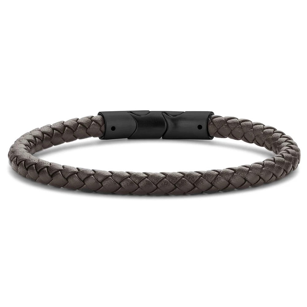 Ανδρικό δερμάτινο πλεκτό βραχιόλι κατασκευασμένο με ακρίβεια, αυτό το βραχιόλι από δέρμα και ατσάλι προσθέτει μια τολμηρή πινελιά στην εμφάνισή σας.