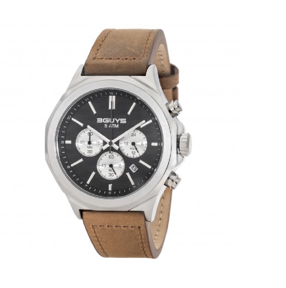 3Guys Men's Chronograph Watch Brown Leather Strap 3G40005