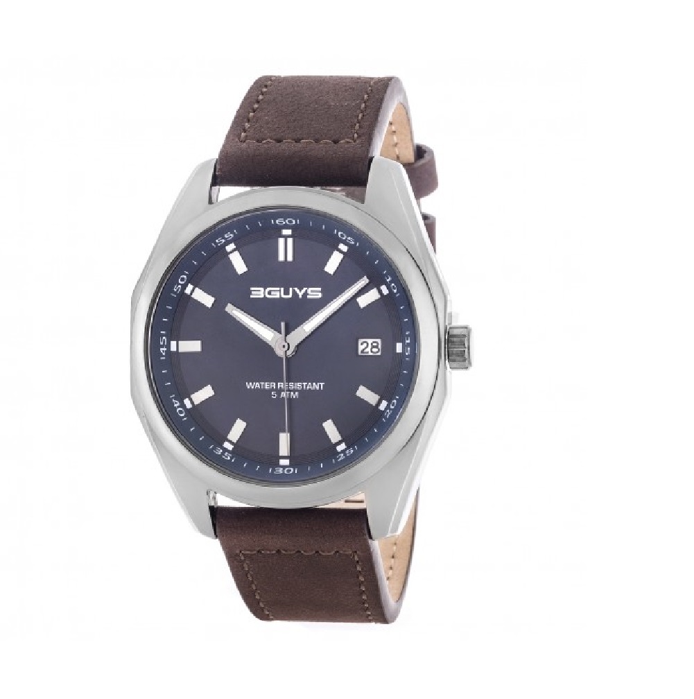 3Guys Men's Watch Brown Leather Strap 3G76004