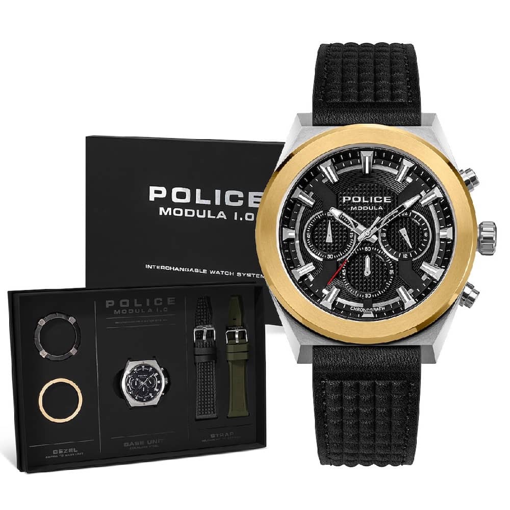 Police Modula 1.0 Men's Watch Black Leather Strap PEWGC00923X0 Box Set