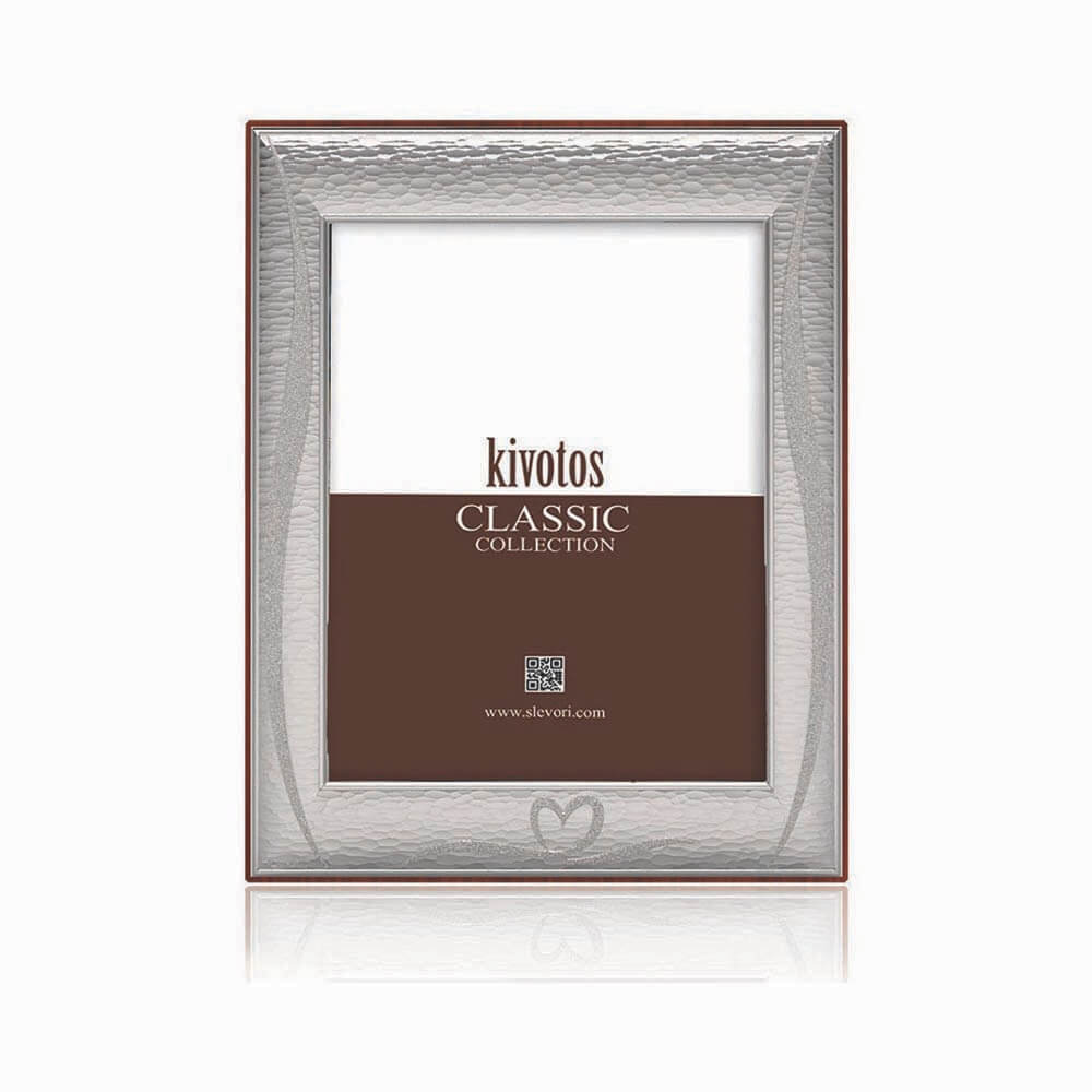 Κορνίζα από ασήμι 925, Slevori, με σαγρέ φινίρισμα και σιρίτι. Η πλάτη είναι ξύλινη σε καφέ χρώμα.