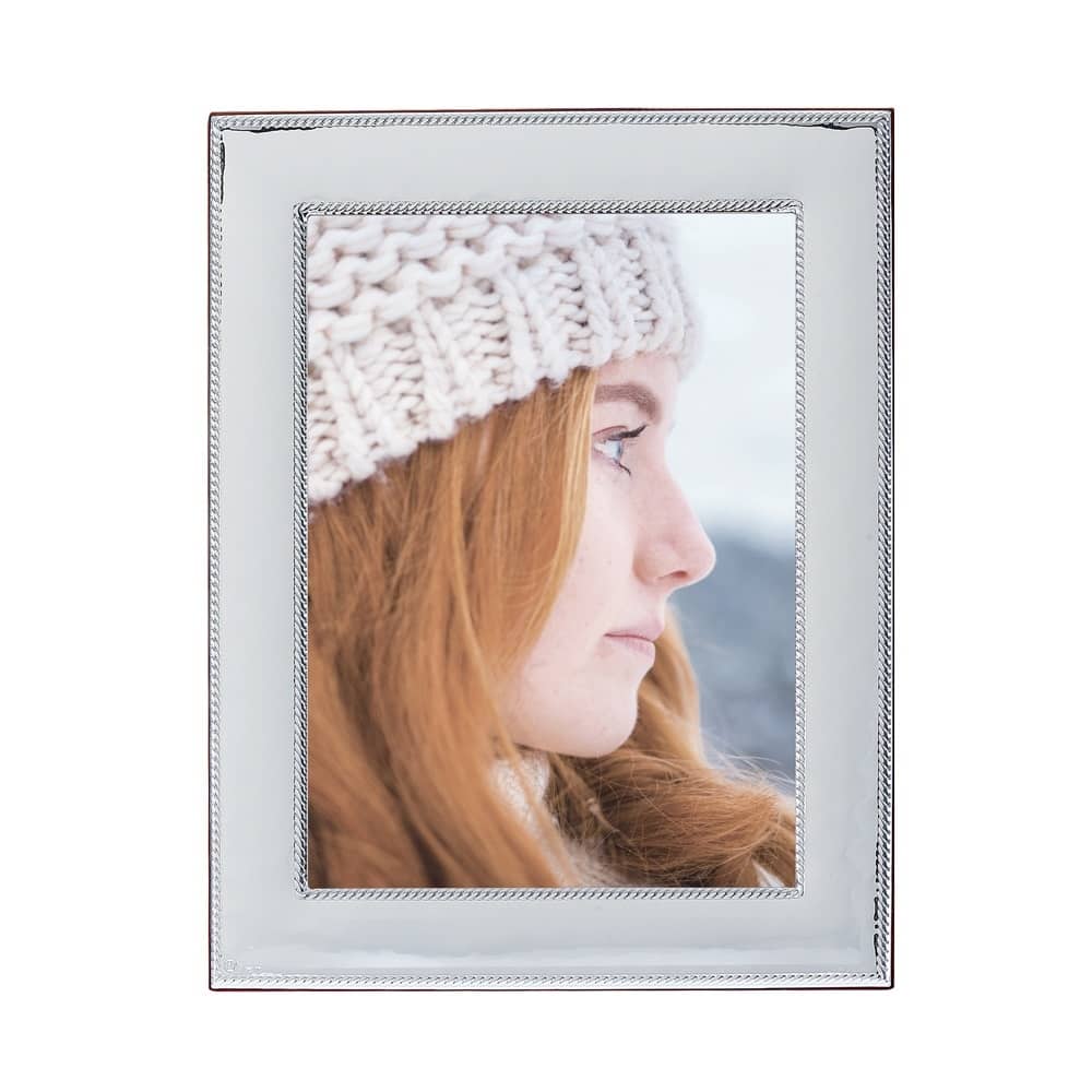 Ασημένια κορνίζα 925 με σχέδιο καμπύλες και με ειδική επίστρωση σμάλτου για να μη μαυρίζει, κομψή και όμορφη κορνίζα με καφέ ξύλινη πλάτη, για να αποτυπώσετε τις καλύτερες στιγμές σας.