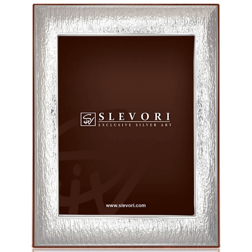 Κορνίζα από ασήμι 925, Slevori, σε ορθογώνιο σχήμα με σχέδιο καρδιά, σφυρήλατο φινίρισμα και ξύλινη πλάτη σε καφέ χρώμα.