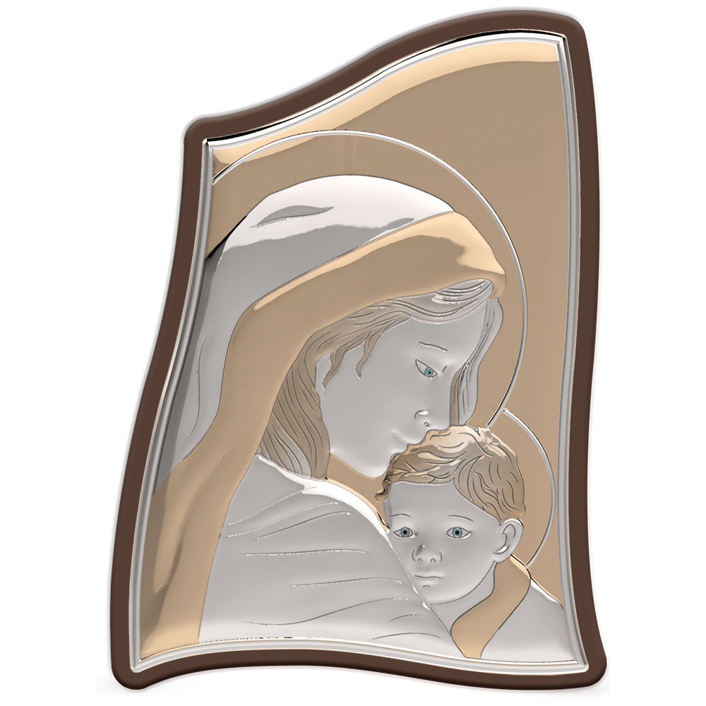 Ασημένια εκκλησιαστική εικόνα, ασύμμετρη, που απεικονίζει την Ευλογημένη Μητέρα.